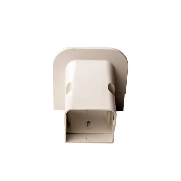 Ideal for outdoor applications where the SpeediChannel™ runs up an exterior wall and enters the house vertically through the soffit. Its large flat surface area easily covers the rough opening cut in the soffit. Furnished in two parts, the Soffit Fitting easily snaps onto the SpeediChannel™ for a clean installation.
