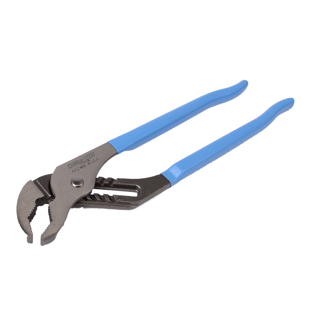 These patented design pliers have permalock fasteners with a reinforcing edge. Pliers adjust smoothly between jaw positions without the distance in the handle growing wider. Lever action allows for maximum force transmission. The grips are also dipped in plastic for a more comfortable hold. Made in the USA