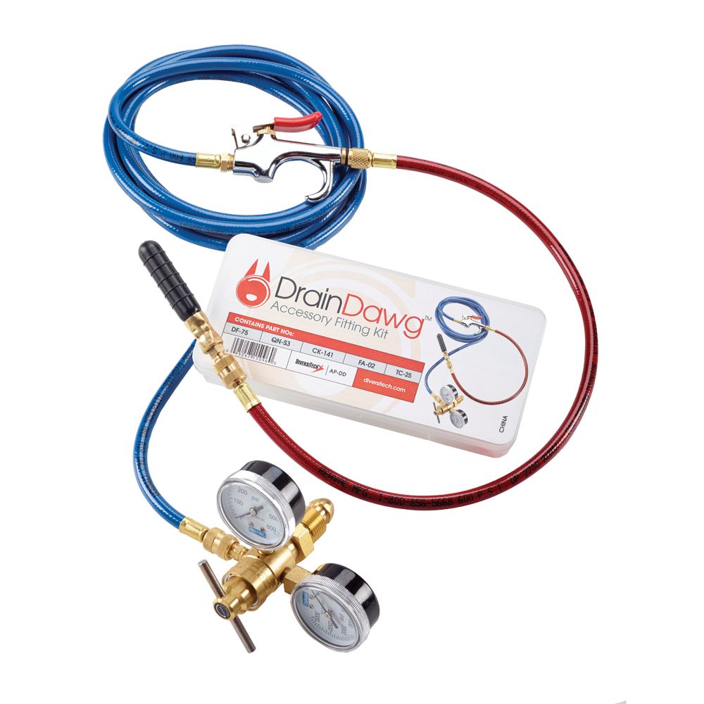 Drain Dawg™ regulator, blow gun, and accessory fitting kit